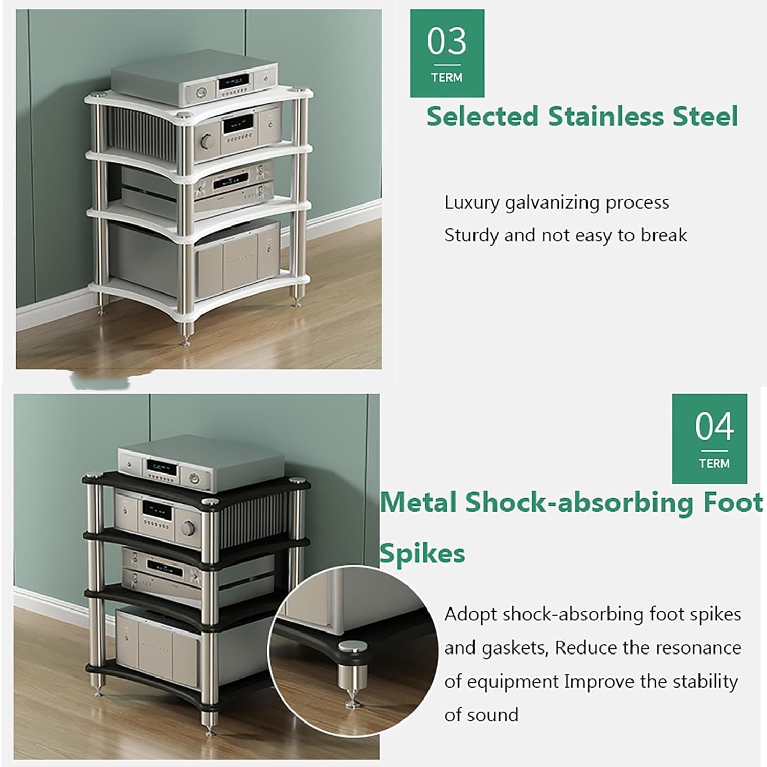 This AV Media Stand is the ideal solution for organizing your entertainment setup. Perfect for storing stereo equipment, center speakers, gaming consoles, DVD players, and streaming devices, it doubles as a sleek and functional media console. Its versatile design makes it suitable as a corner TV stand, Rack Audio Tower, or small entertainment center, offering ample space for all your media essentials.Crafted with a durable wooden board and sturdy metal frame, this media stand blends modern style with functionality. Whether used in a living room, office, or entertainment space, it serves as a practical media shelf or record player console cabinet, ideal for showcasing and organizing your audio and visual equipment.Specifications:Product Name: Rack Audio Tower / Open Storage Shelf / Multimedia Storage TowerStyle: Simple modernMaterial: Wooden board + metal pipeAssembly required: YesPackage Includes: 1 x Audio Cabinet (Items in pictures not included)This entertainment stand fits seamlessly into any space, whether you're looking for small TV stands for living room or a versatile corner rack for your audio gear.
