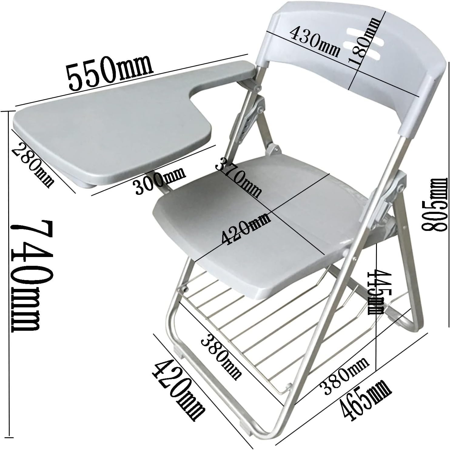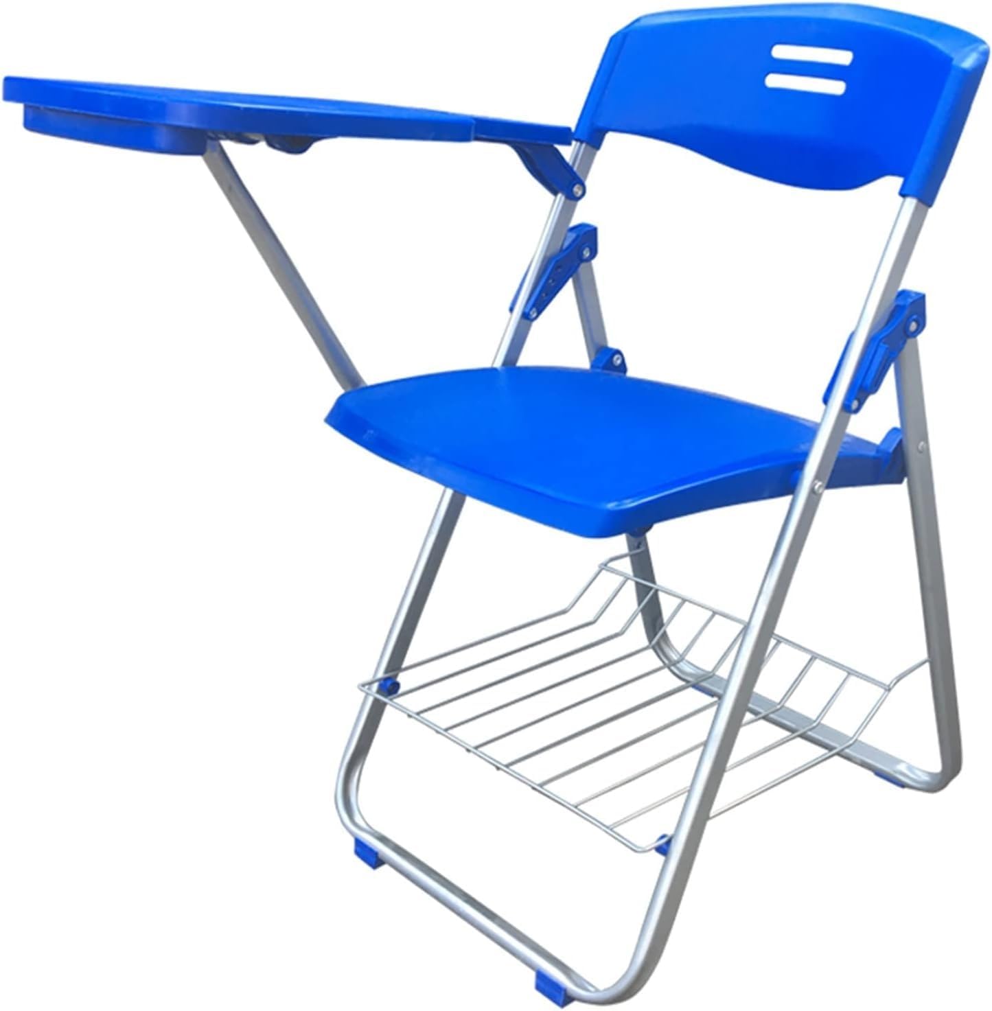 Name: with writing board Material: imported material steel frame, high- quality pp material Color classifin: black single chair+ writing board + book net, gray single chair+ writing board + book net, blue single chair+ writing board + book net, green single chair+ writing board + book net Applin scenarios: training, conference, office, early edun, school Whether it can be folded: yes Whether with a roller: No Whether it can be raised and lowered: No Whether to bring a writing board: Yes Is there a il: No Whether it can be stacked: No