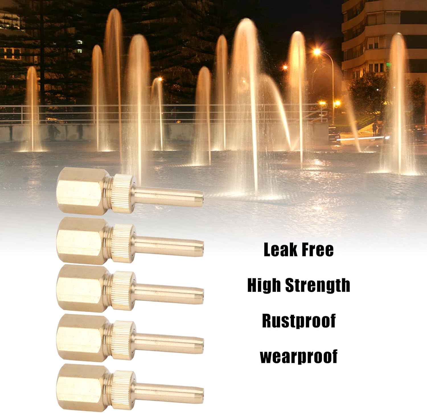Feature:PREMIUM BUILD - Durably Brass - Longevity and classic goeseslden aesthetics for garden pond nozzles.LEAK - PROOF DESIGN - Secure Installation - Brass nozzle ensures a reliable, tight fit for consistent water display.SUPERIOR DURABILITY - High - Strength Construction - Rugged design for effective replacement in various water features.RUST RESISTANCE - Rust - Proof Benefits - Dependable operating and needn't maintenance enjoyment in any setting.WEAR RESISTANT - All - Brass Make - Resilient against wear, suitable for continuous use in public spaces or private gardens.Specification:Item Type: Fountain NozzleMaterial: BrassWeight: Approx. 625g / 22ozThread: G1/2in Inner ThreadWorking Pressure: 50 - 100kpaConnection Mode: Internal Thread ConnectionApplicable Scope: Landscape, Park, Indoor, Square, HotelPackage List:5 x Fountain Nozzle