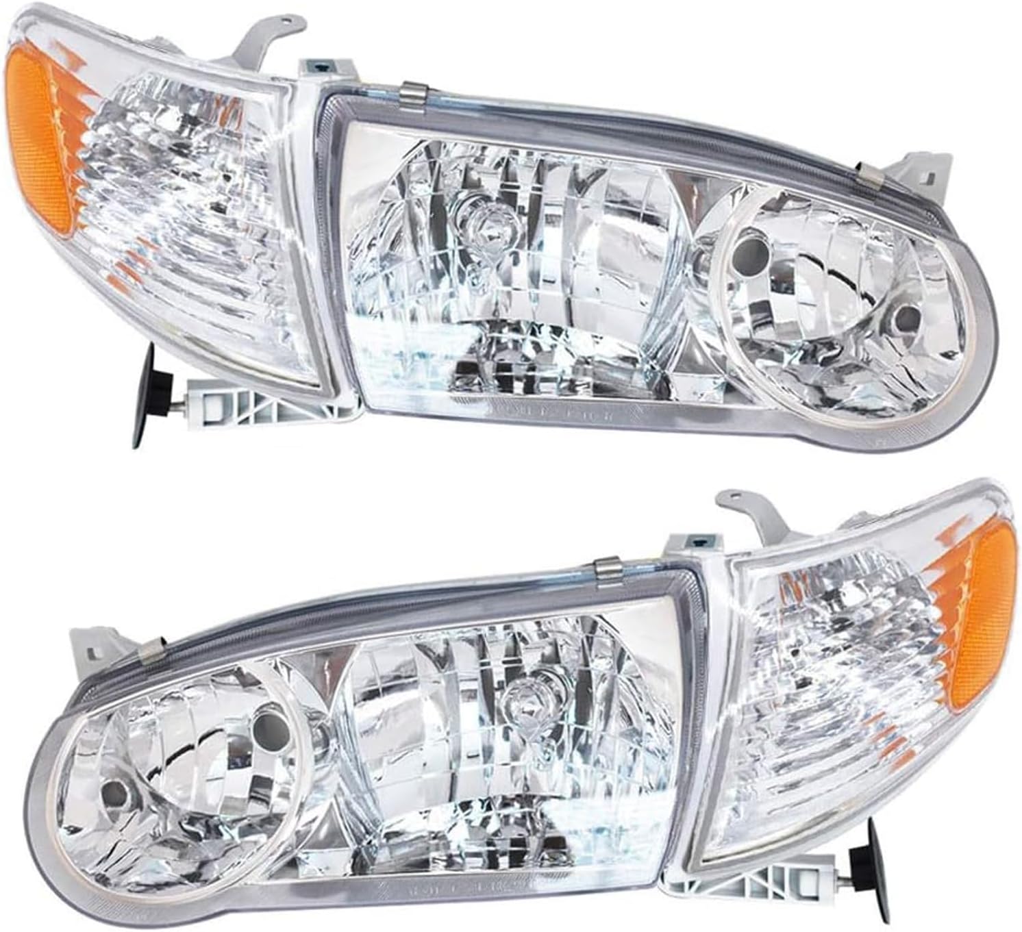 Fitment:Replacement for Corolla 2001 headlightsReplacement for Corolla 2002 headlightsPart Number: Replacement for 8115002100 8111002110Specifications:Lens Color: ClearHousing Color: ChromeLow Beam Bulbs: 9006 HB4 Bulbs (not included)High Beam Bulbs: 9005 HB3 Bulbs (not included)Turn Signal Bulbs: 3157A Bulbs (not included)Type: Headlights AssemblyFitment Type: Direct ReplacementPlacement on Vehicle: Front, Left, RightFeatures1.The light has a beautiful design that can upgrade your car with a greatly new look and add special style2.Perfect match for your lights,no wiring or any other modification needed3.No installation guide or instruction included,professional installation is recommended4.Special coating on the lens surface prevents hazing and fading, ensuring proper illumination and operational safetyPackage Includes1 x Left Headlight Assembly1 x Right Headlight Assembly