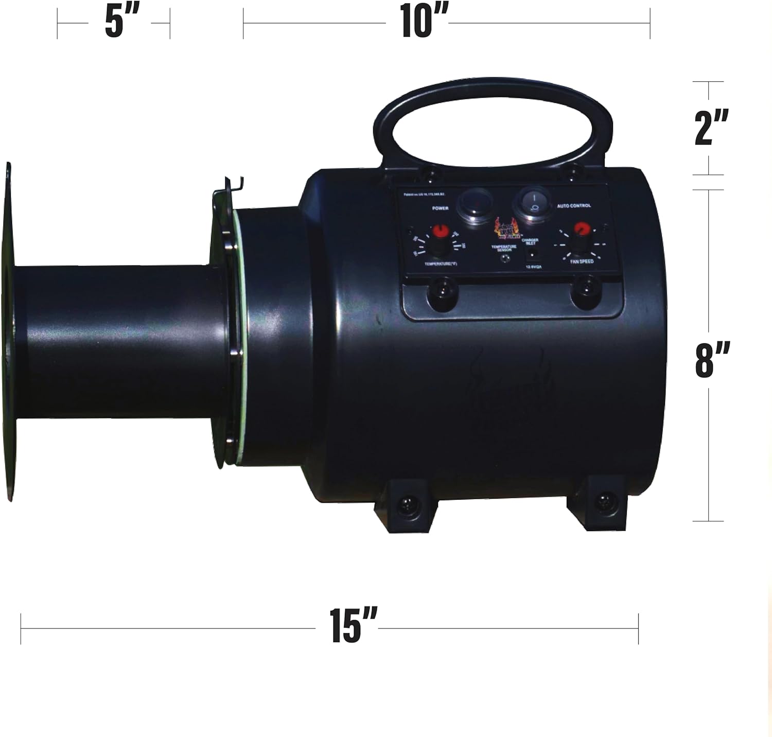 | Included Components | 120v Power Charger, 8' Wired Probe with Grill Grate Clip, Blower Unit, Safety Mounting Hook with bolt, Steel Adapter/Extender |