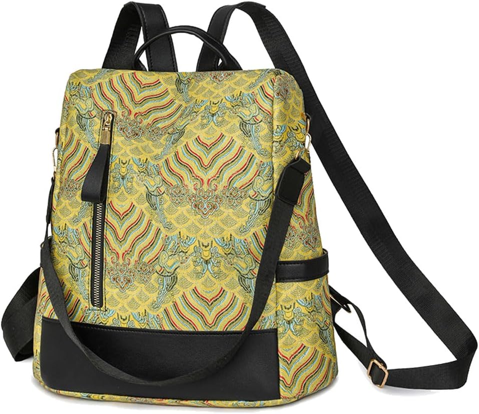 "*Material:Pu leather.size:32*12*33CM.Weight:430G. *Unique Design: This Women Backpack designed with chinese culture pattern printed,which is very unique and fashionable. *High Quality:Made of durable and lightweight PU leather, this backpack purse is easy to clean and maintain. *Adjustable Straps: The adjustable shoulder straps allow for a comfortable and customizable fit, making it suitable for all-day wear.. *Practical Structure: Effective anti-theft design.1 main zipper compartment with 2 interior slot pockets, 2 side pockets and 1 front zipper pockets. Multi-pockets could fit your A4 books, iPad, cell phone, umbrella and keep your daily items well organized."